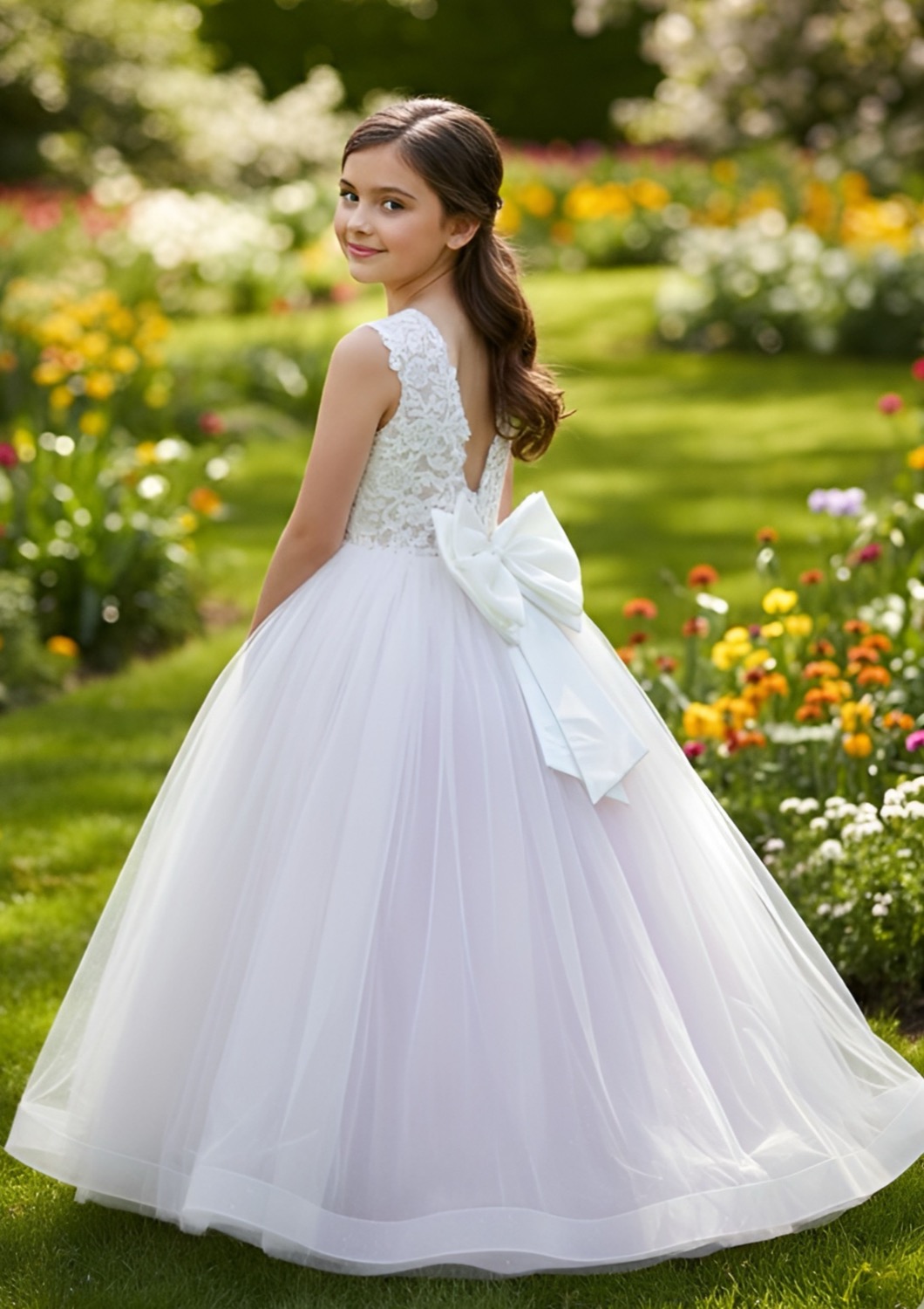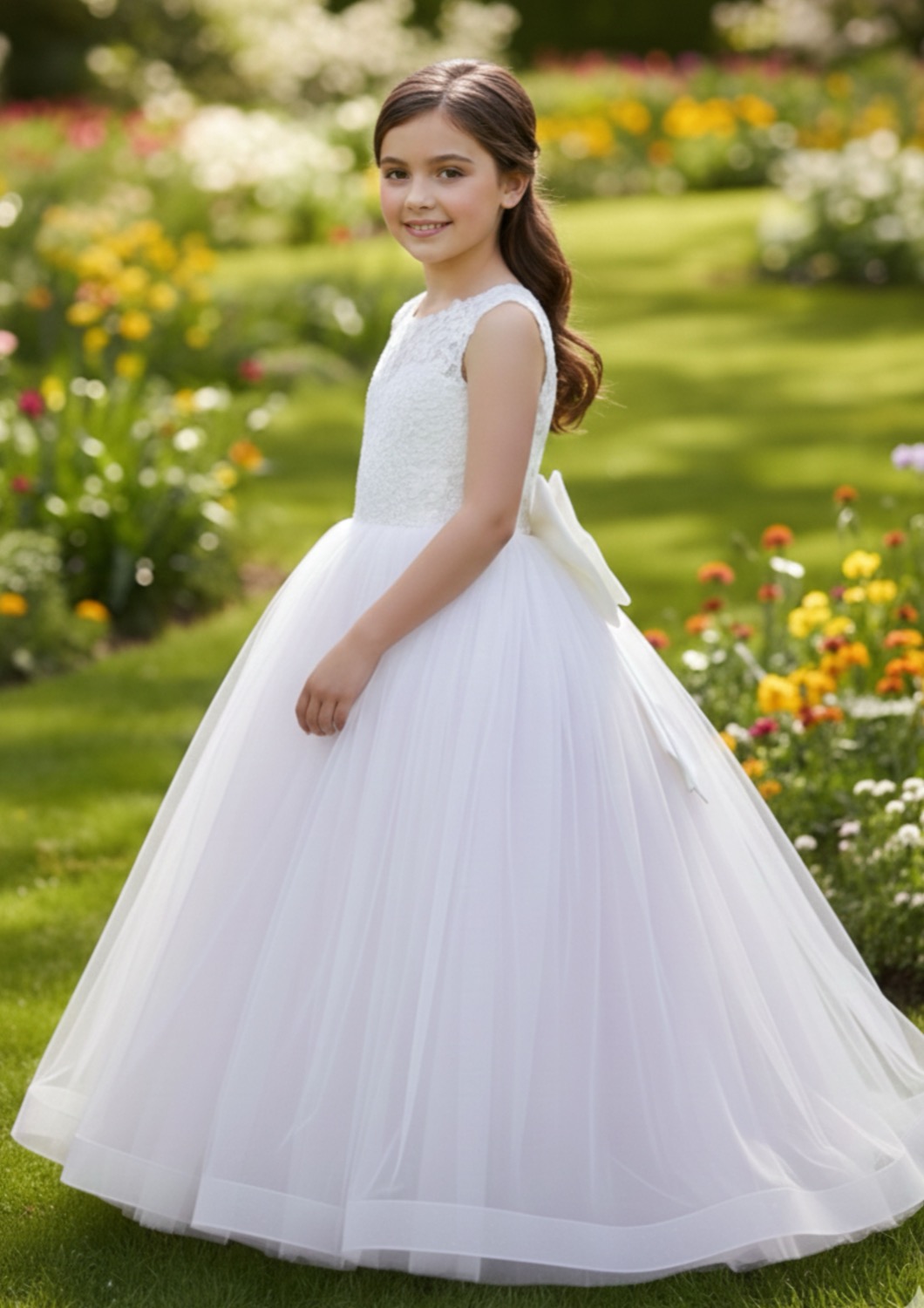 Vestito cerimonia luxury per bambina in tulle e pizzo. Un abito da sogno come una principessa in una fiaba.