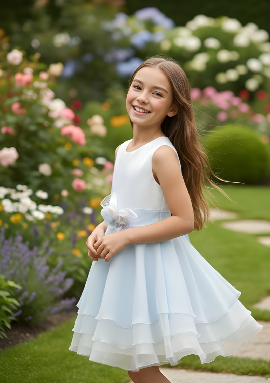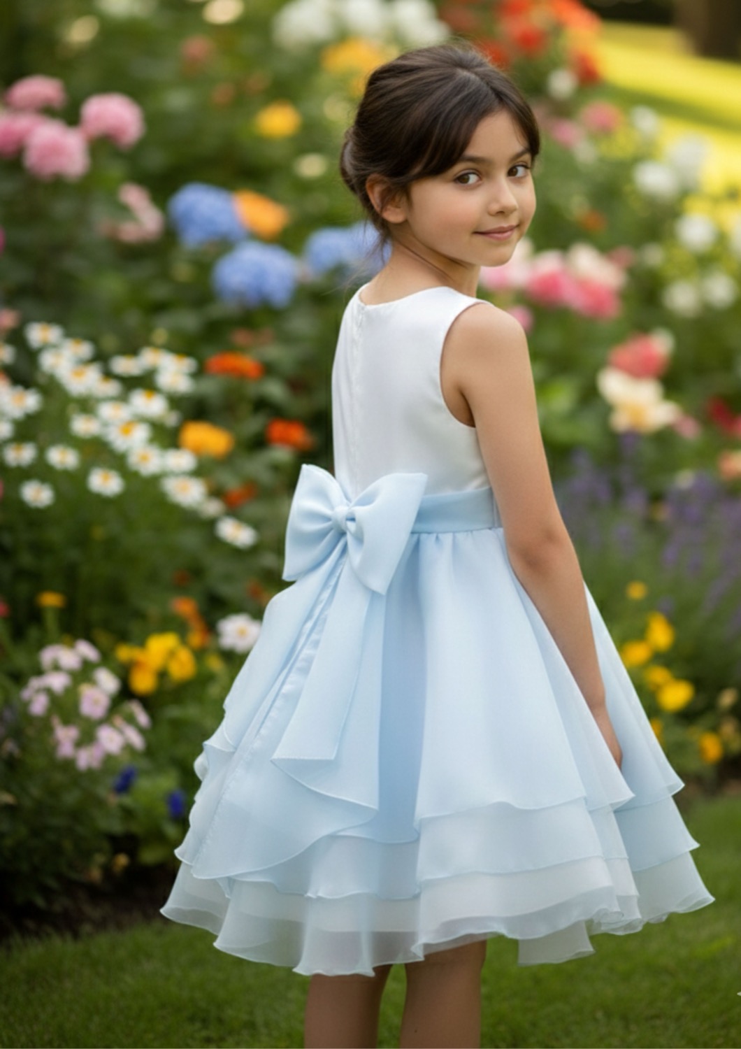 Vestito cerimonia luxury per bambina in organza. Un abito da sogno come una principessa in una fiaba.