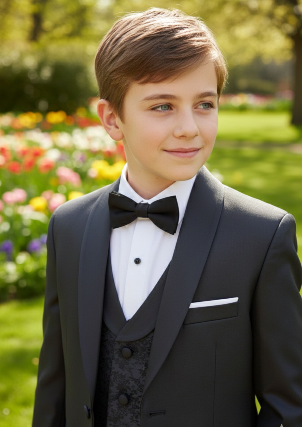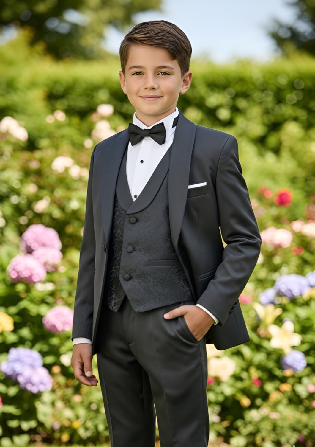 Ideale per Comunione o Paggetto Matrimonio, lo smoking Michelangelo incanta con la sua eleganza raffinata.